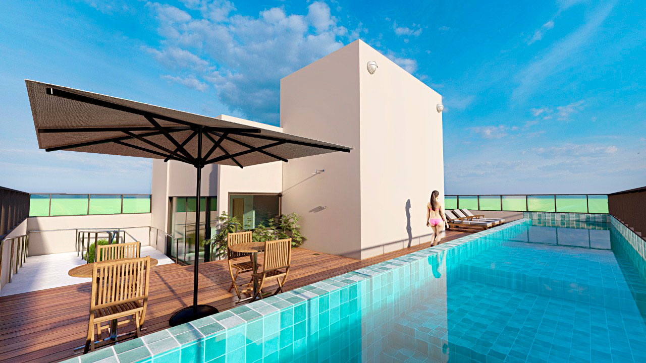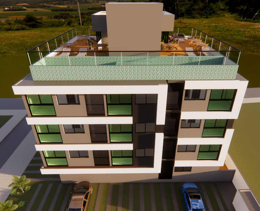 05 pavimentos e 31 apartamentos | 13 vagas de estacionamento | Apartamentos Térreo e Tipo | Opções de aptos com área externa | Elevador | Rooftop com estrutura de lazer completa | Lavanderia | Recepção | Área verde